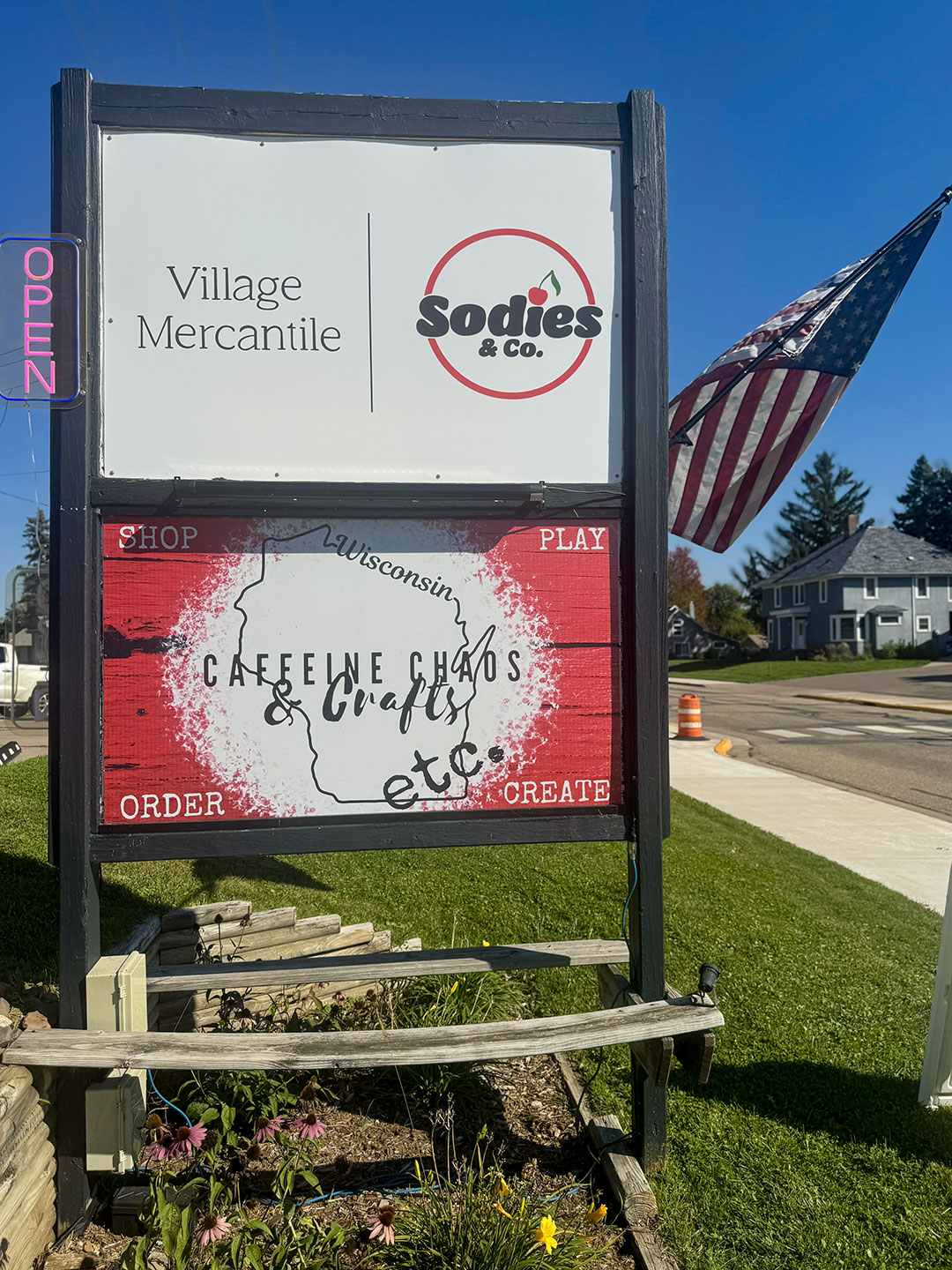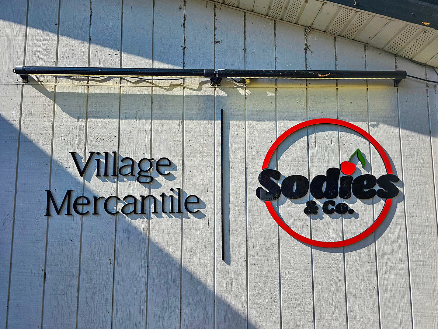 Rollout Construction Industries completed custom signage for Sodies & Co. + Village Mercantile, a combined specialty soda shop and small-town general store concept located in Somerset, Wisconsin. The project included fabrication and installation of a custom pylon sign panel along with interior and exterior acrylic signage elements designed to reflect the shop’s playful, community-focused brand identity. Materials and finishes were selected for durability, visibility, and visual impact, helping the storefront stand out while maintaining compatibility with local sign requirements. The finished installation delivers strong roadside presence and cohesive on-site branding for both businesses operating within the shared location.